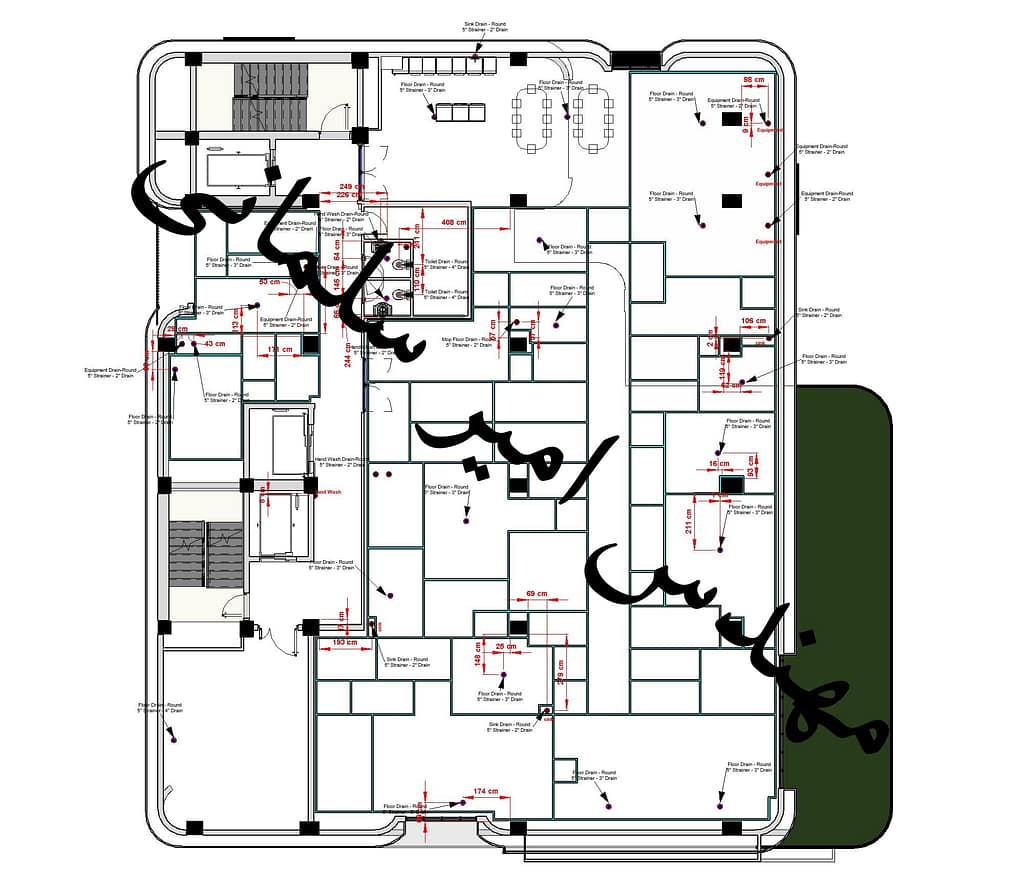یکی از موضوعات کلیدی در این سیستم، طراحی نقاط تخلیه است. دهانههای فاضلاب کف یا Floor Drain باید از استیل ضدزنگ 304 یا 316 ساخته شوند و بهصورت Flush Mount (همسطح با کف) نصب شوند تا جریان هوا و حرکت پرسنل خللی پیدا نکند. داخل این دهانهها باید حتماً سیفون یا P-Trap نصب شود تا از نفوذ گازهای نامطبوع و ذرات معلق از شبکه فاضلاب به محیط تمیز جلوگیری شود. برخی پروژهها از سیفونهای خشک (Dry Trap) یا Seal-Tight Trap با دریچه مکانیکی استفاده میکنند که نیاز به آببندی مداوم با آب ندارند و برای فضاهایی که تبخیر آب بالا است، ایدهآل هستند.